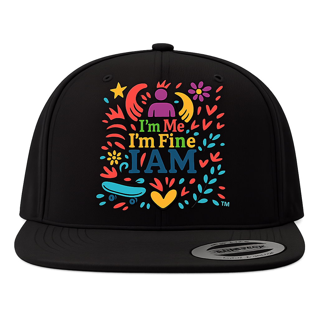 This flat bill cap brings quiet confidence to everyday wear. The embroidered square on the front features a vibrant folk-inspired motif and uplifting words that peek through a distressed, vintage finish—an artful mix of color and texture that reads like a worn poster found on a city walk. The high-profile, five-panel silhouette holds its shape while the green undervisor offers a subtle retro accent each time you tip your head. Lightweight cotton twill and sewn eyelets keep you cool; the snapback makes for quick, easy adjustments so it sits just right. Wear it while wandering markets, running errands, or grounding a casual outfit with a handcrafted, lived-in energy.