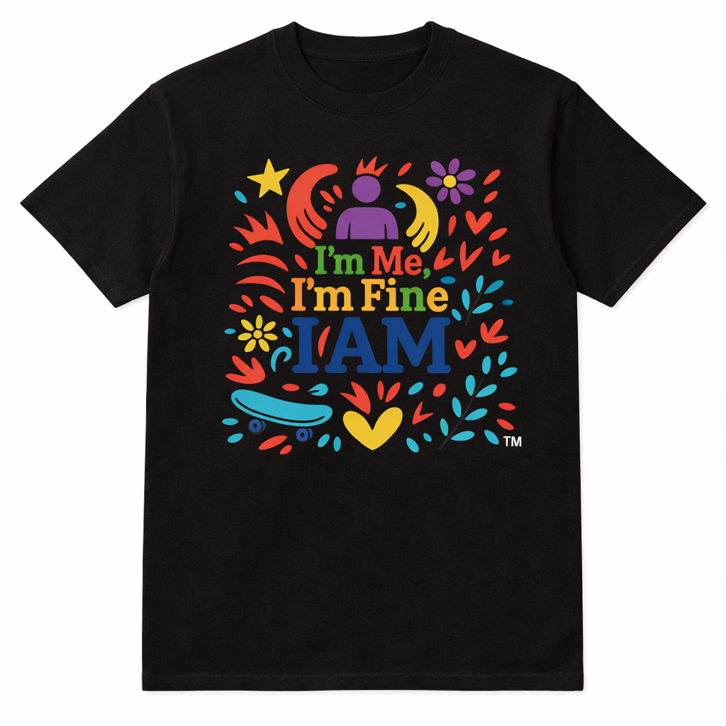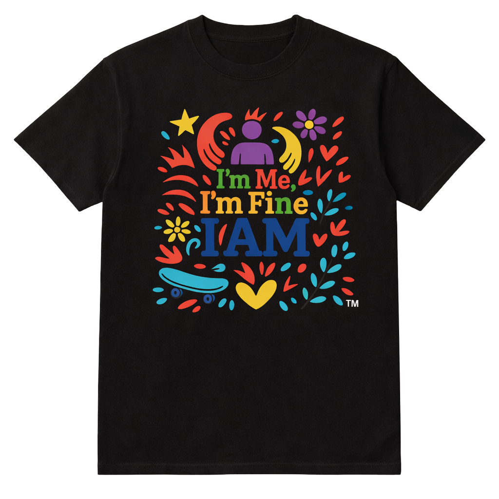 Bright, warm, and unapologetically authentic — this lightweight crew tee carries a small, joyful manifesto: “I’m Me, I’m Fine, I AM.” Hand-drawn florals, playful shapes, and a sunny palette create a design that feels like a deep breath and a little celebration. The soft ring-spun cotton and smooth print sit close to the skin, so the message reads as part of your everyday rhythm — during slow mornings, creative afternoons, or casual meetups where being seen matters more than fitting in. Wear it layered with a cardigan for at-home calm or solo with jeans when you want to show up confident but relaxed. The honest texture of the Natural colorway adds subtle character, while tear-away labels and stable shoulder tape keep the fit comfortable through repeat wear.
